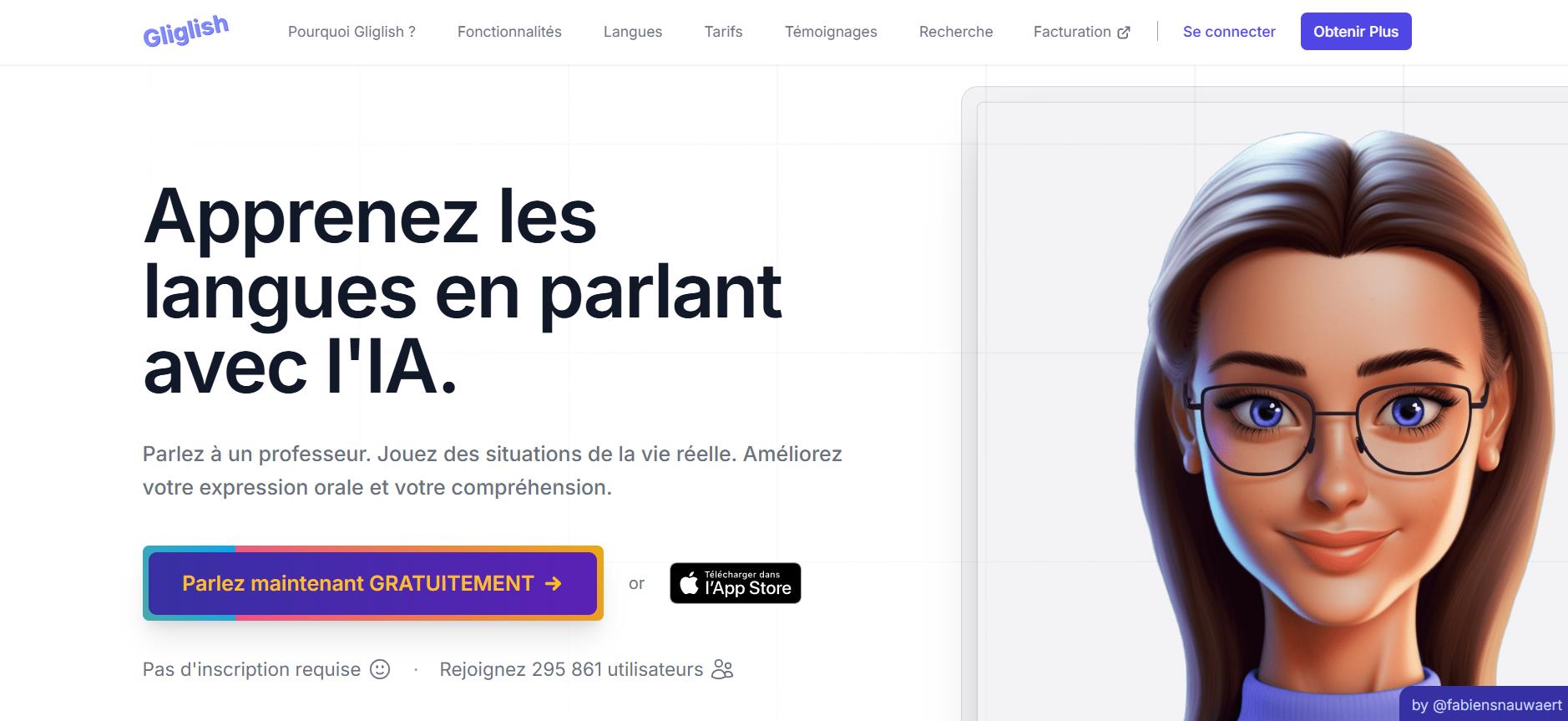 Gliglish est une application IA pour apprendre les langues conçue pour aider les utilisateurs à pratiquer à travers des conversations réalistes avec un assistant virtuel. L’application propose une variété de scénarios, des mini-cours et des corrections grammaticales pour améliorer la confiance et la fluidité. Elle est particulièrement adaptée aux débutants, offrant une interface simple et engageante, idéale pour ceux qui souhaitent se lancer dans l’apprentissage de la langue parlée.