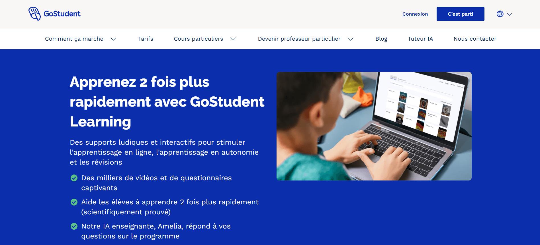 2. GoStudent Learning : bénéficiez d’une plateforme et d’outils complets de GoStudent Learning pour réviser. Évoluez grâce à un suivi personnalisé de vos progrès et des ressources interactives variées. C’est l’outil idéal comme complément de cours particuliers en ligne.